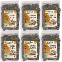 Concentrées en protéines, fibres et minéraux, les graines de chia MARKAL ont un goût très peu prononcé. Ingrédient(s) :Graines de chia "Salvia hispanica" biologiques. Conseils d’utilisation : Se consomment telles quelles, moulues ou pour la préparation du gel de chia : faire tremper les graines de chia dans 10 volumes d'eau. Laisser reposer au...